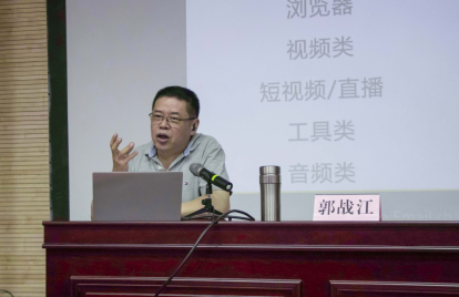 随后,郭战江通过大家耳熟能详的短视频,对“新媒介 新传播 新媒体”进行了生动详细的阐述,并就目前新媒体的发展利弊作出了分析讲解。郭老师表示,在目前蓬勃发展的年代,新的文化风度与新的时代活力不断涌现。我们将和我们的行业一起踏入新时代!“立足根本,不忘初心;与时俱进,面对未来!”