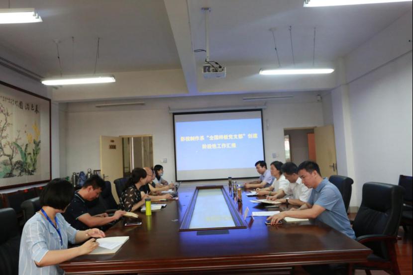 7月8日上午,影视制作系于文东校区4楼会议室召开“全国样板党支部”创建阶段性工作汇报会议,学院党委书记孙茜芸,党委副书记、院长胡建军,党委副书记齐元江,党委委员、组织人事处处长郭成良,影视制作系主任贾庆萍、党总支书记刘宝坤及部分支委成员参加本次会议。会议由贾庆萍主持。