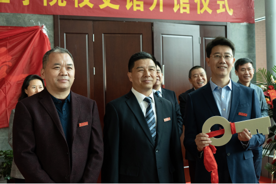 学院党委副书记、院长胡建军为在筹建过程中捐赠物品的教职工和校友代表发放捐赠证书,并主持校史馆建设工作组与校史馆管理单位的钥匙交接仪式。