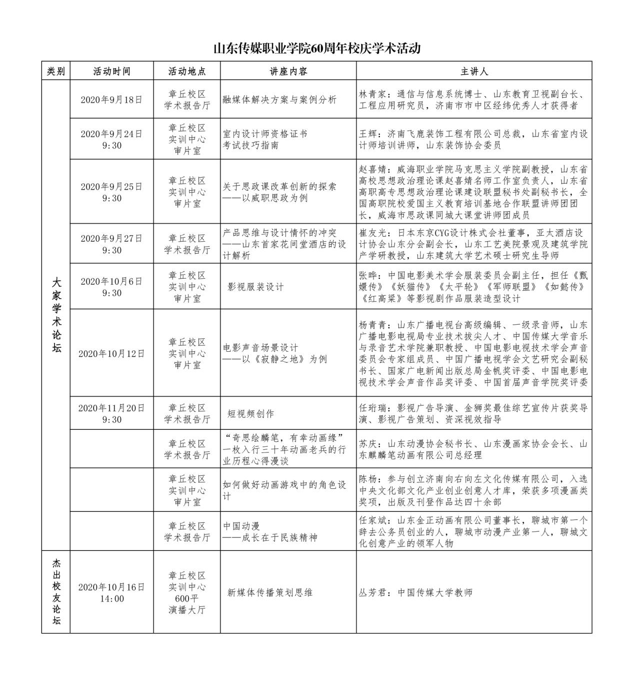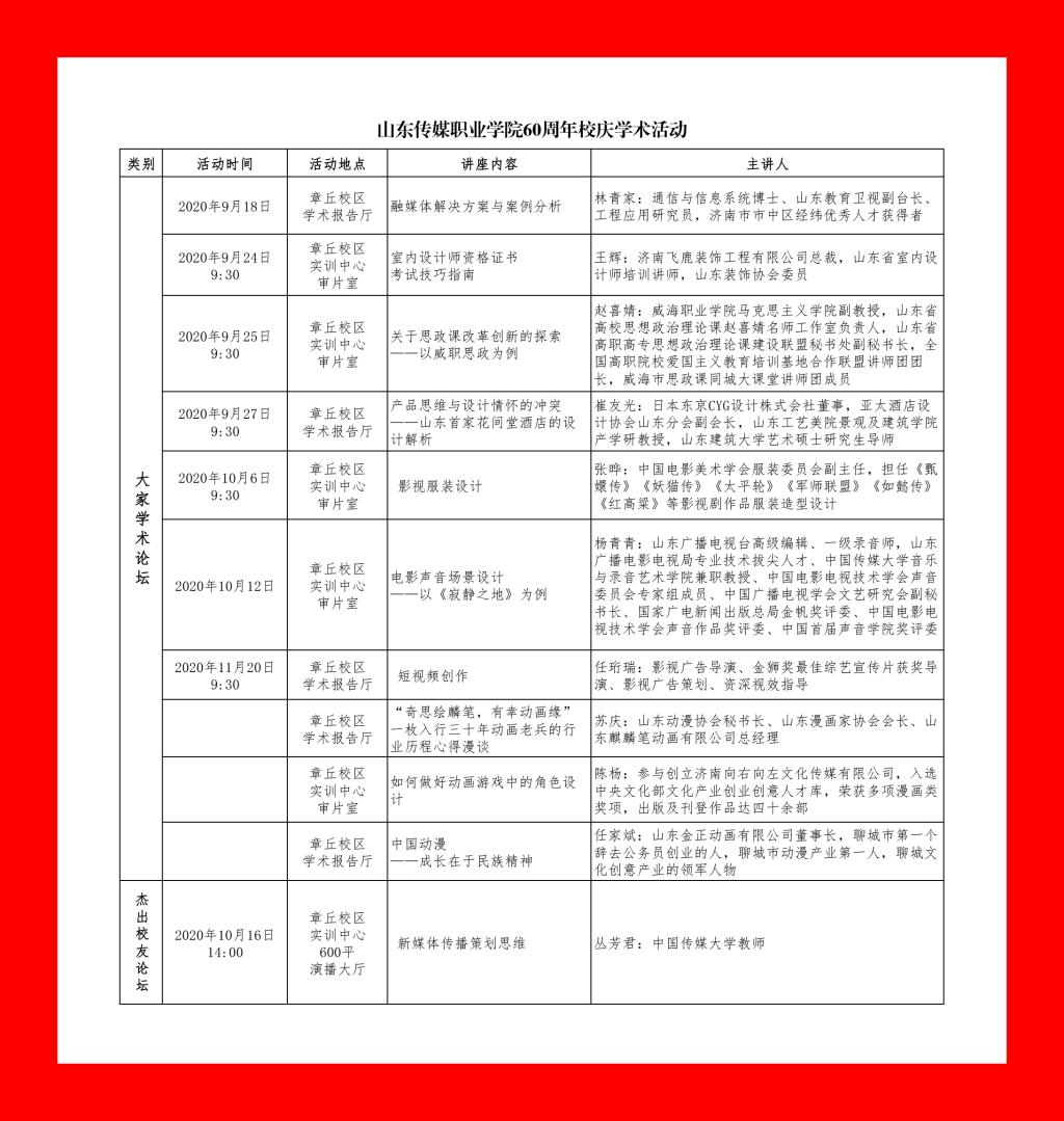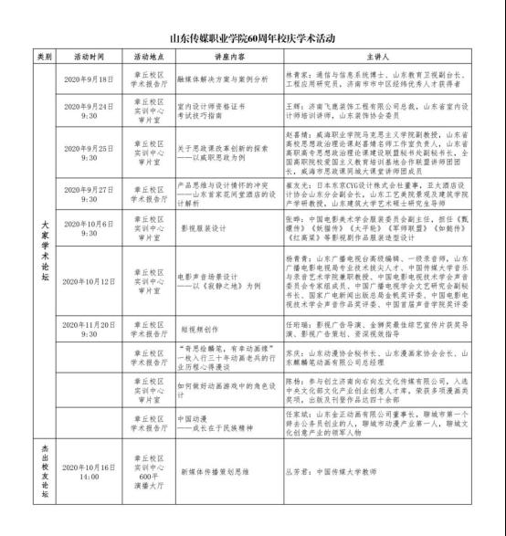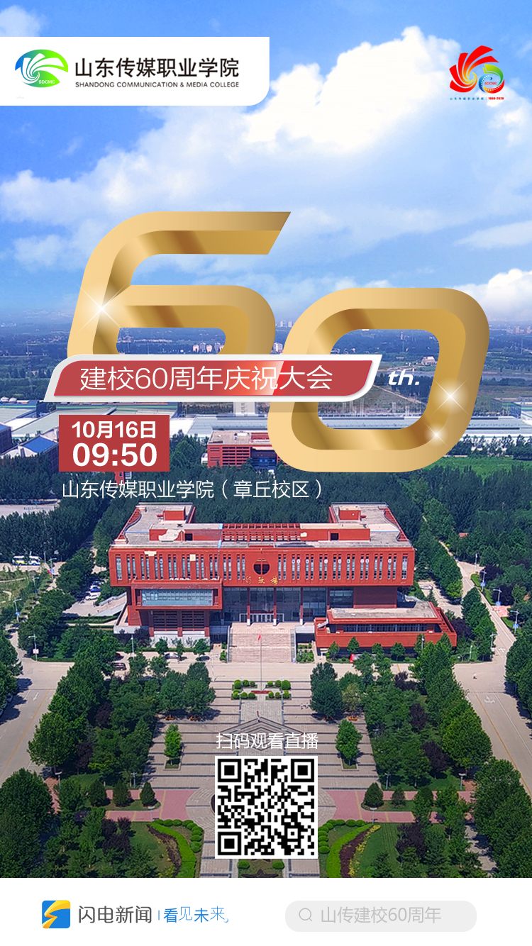 金秋时节喜迎六十华诞,丹桂飘香共忆甲子春秋。经历60年建设与发展的山东传媒职业学院正以崭新的面貌,热切期盼广大海内外校友聚首绣源河畔,同叙桃李深情,共商发展大计;热诚欢迎各级领导和四海宾朋拨冗莅临,同庆华诞盛典,共铸明日辉煌!