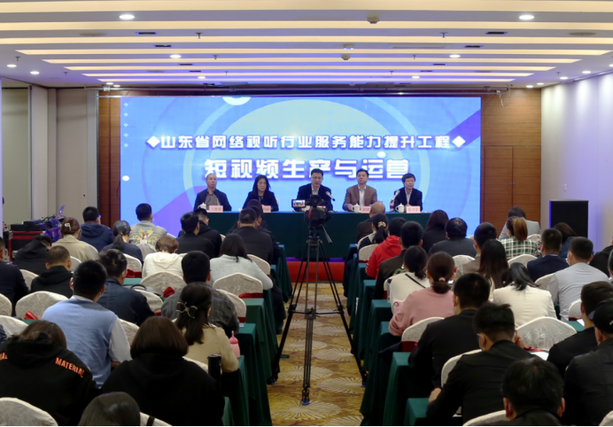 为进一步推进山东省网络视听行业高质量创新性发展,加快推动媒体融合,提升网络视听从业人员能力素质,4月19日,山东省网络视听行业服务能力提升工程—短视频生产与运营专业培训在济南顺利开班。山东省广播电视局党组成员、副局长刘国华出席开班仪式并做动员讲话,学院党委副书记、院长胡建军致欢迎辞,省局网络视听节目管理处处长汪春丽,省局网络视听节目管理处副处长王恕来,学院党委委员、副院长张卫东参加开班仪式,来自全省16市区县融媒体中心的60余名参训学员参加了本次培训。