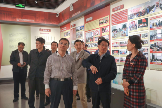 随后,邓云锋一行来到校史馆,通过大量详实的文字、实物、图片和多媒体史料,详细了解学院60年发展历程和历史沿革。邓云锋十分关心学院思想政治工作,走进“葵花田”网络思政工作室,观摩了思政教师和学生共同组织的思政课程研讨会,对学院在首届全省学校思想政治理论课教学比赛中荣获一等奖的成绩给予肯定。