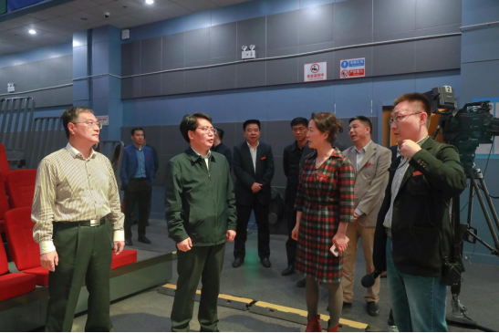 在实训中心,邓云锋观看了学院宣传片、承办山东省大学生安全知识大赛专题片、学院党史学习教育专题片,实地参观了学院的600平演播大厅、200平演播室、100平虚拟演播室、导播间、录音棚、摄影棚、音频剪辑机房等实训场地,现场听了播音主持专业小课,对我院的师资队伍、专业建设、招生就业、实践教学、产教融合、课程思政等方面的工作给予肯定,并表示学院在软硬件建设和人才培养上,已经取得了丰硕成果,具有鲜明的传媒教育特色,塑造了传媒职业教育品牌。