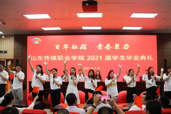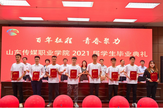 学院党委委员、副院长张涛宣读《山东传媒职业学院关于准予2021届梅荣兴等2389名学生毕业的决定》和《山东传媒职业学院关于表彰2021届山东省优秀毕业生的决定》。学院领导为毕业生代表和省级优秀毕业生代表颁发毕业证书及荣誉证书。