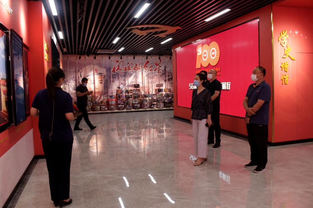 在“时代先锋——5G高新视频党史教育展厅”,同志们通过展陈叙事的方式,在卫星遥感、可视化技术和幻影场景“云上长征路”“天坑开路人”等内容的结合中,从“学史明理、学史增信、学史崇德、学史力行”四个方面,将理论与历史相结合,深刻体悟党百年奋斗历程。