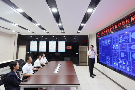 9月3日上午,省直机关文明单位全覆盖现场复查第十六检查组在组长冯琳带领下,一行四人到山东传媒职业学院检查文明单位建设工作。省广电局一级巡视员孙杏林,省广电局机关党委专职副书记金鑫,学院党委书记孙茜芸,党委副书记、院长胡建军,党委副书记齐元江参加座谈会并陪同检查。