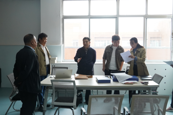 在现场资料查看中,胡建军对学生安全管理“六个一”工作资料进行了详细查看,并详细询问了各系学生安全工作开展情况。张涛对三个系的实验室、实训室安全管理进行了仔细检查。