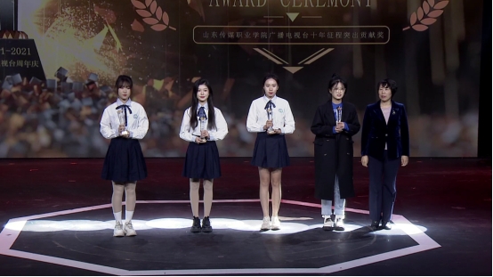 活动中,社会传媒一线的广播电视台各届学生干部代表作为见证者、践行者与推动者向我们讲述了他们和广播电视台的故事。参会领导为十年最佳栏目和突出贡献个人颁发了奖杯和证书。