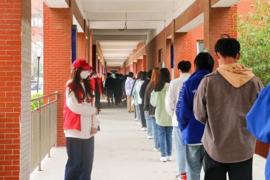 学院全力调动社会核酸检测力量,对两校区在校师生员工进行全员核酸检测,实现校内人员核酸检测全覆盖。校内设立多处检测点,8个采样小组,16位医护人员同时采样,高效率、高质量完成检测工作,确保全院核酸检测畅通有序。
