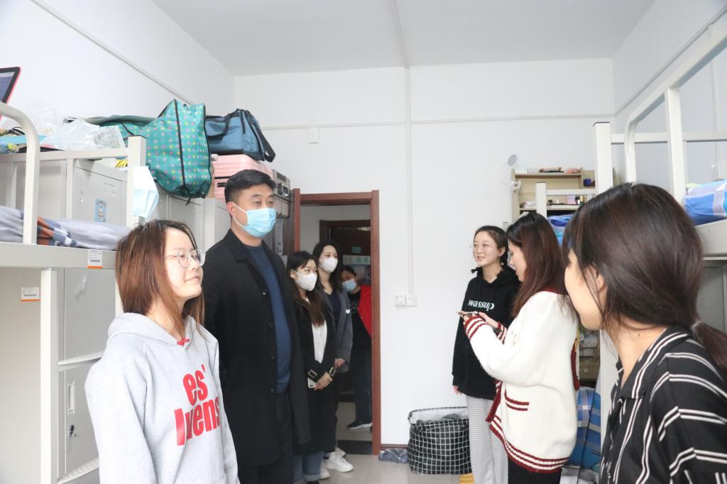 疫情防控严把关,浓浓关怀暖人。学前教育与戏剧系党总支副书记修振扎实做好疫情防控期间学生教育管理工作,压紧压实责任,确保学生管理工作有序推进;举办文体活动,丰富同学们在校生活;走进学生宿舍,在与同学们的亲切交谈中,让同学们倍感温馨,坚定了大家战胜疫情的信心与决心。