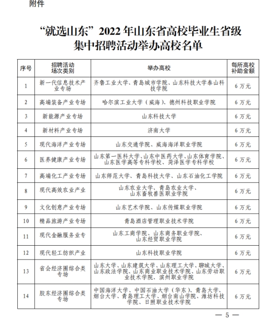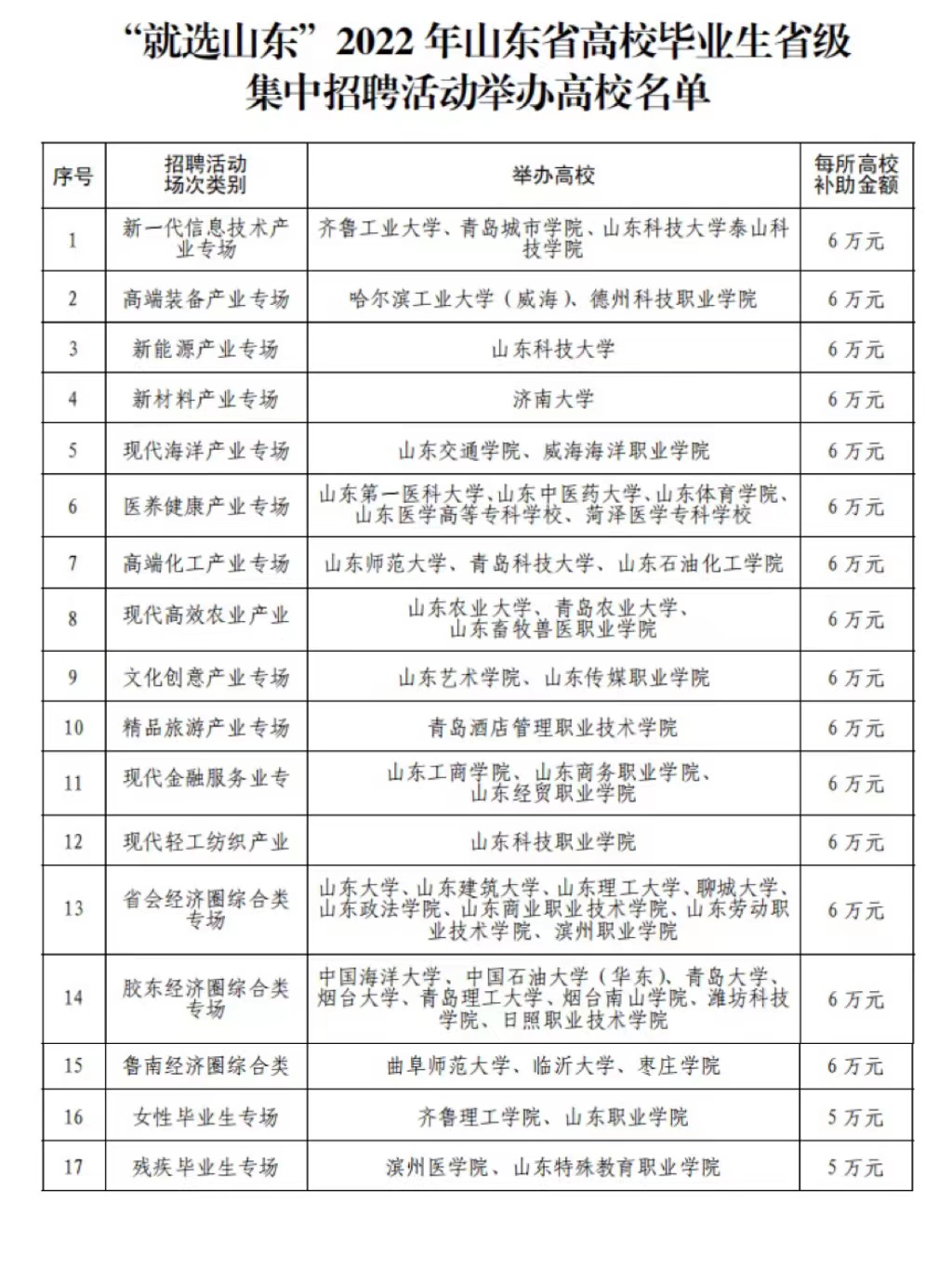 近日,山东省人力资源和社会保障厅发布了《关于开展“就选山东”2022年山东省高校毕业生校园招聘系列活动的通知》,全省本科院校和职业院校共同申报,经专家评审,我院最终成功获得举办“文化创意产业专场”资格,并获得补助资金6万元。