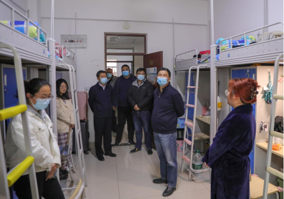 4月14日下午,学院领导胡建军、齐元江走进宿舍走访慰问学生,了解同学们的身心健康状况和线上教学效果情况,把学院对学生的关心和爱护送到同学们的心坎上。