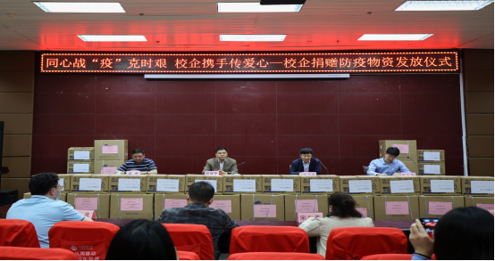 5月7日,学院举行校企捐赠防疫物资捐赠发放仪式。学院党委副书记、院长胡建军,党委委员、副院长张卫东,学生工作处处长高睿,招生就业处(校企合作办)处长何东亮,及各系党总支副书记、辅导员参加了捐赠防疫物资发放仪式。发放仪式由张卫东主持。