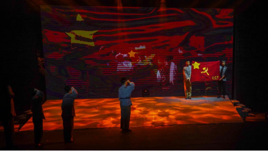 长期以来,学院高度重视将专业特色与思政教育有机融合,发挥优秀文化作品的育人功能,由艺术带动德育,由德育引导人文,由人文带动校园,形成了灵动、和谐、创新的校园文化。话剧《永远的旗帜》将艺术创作与立德树人相结合,与培育和践行社会主义核心价值观相结合,与优秀传统文化、红色革命文化相结合,以艺育德、以艺化人,是继《黄大年》《我在天堂等你》《时间记忆》等多部作品之后,将专业课程与思政教育深度结合、实现协同育人又一力作,有效推动红色文化可触可感,红色精神入脑入心,营造起“喜迎二十大 奋进新征程”浓厚氛围,教育引导广大师生感党恩、听党话、跟党走,传承红色基因,凝聚奋斗力量,为学院推动高质量发展提供强大精神动力!
