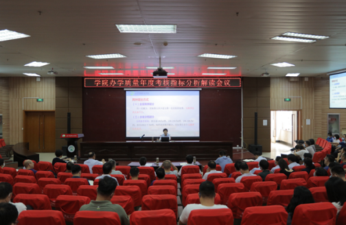 8月25日,学院举行办学质量年度考核指标分析解读会议,全面分析学院办学质量考核成绩,统筹调度各项重点工作。学院党委副书记、院长胡建军主持会议并讲话,党委委员、副院长张卫东作考核指标分析解读报告。全体院领导、副科级及中级职称以上人员参加会议。