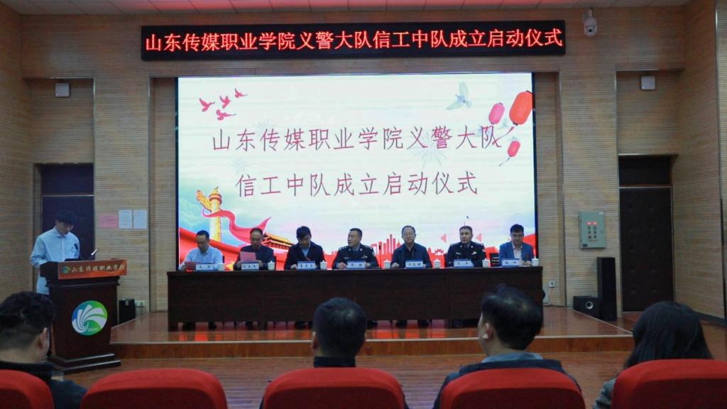 3月14日下午,学院义警大队信工中队成立启动仪式在章丘校区实训楼顺利举行。学院党委副书记、院长张涛,党委委员、院长助理尹纪瑜及安全保卫处、实训中心、信息工程系等部门负责同志参加仪式,市公安局经济文化保卫支队副支队长隋建一行应邀出席,校警双方及学生代表170余人参加。仪式由安全保卫处王涛处长主持。