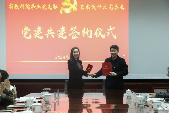 4月4日上午,省教科院党委委员、副院长薄存旭一行七人来院交流座谈,并举行省教科院第五党支部与学院艺术设计系党总支的党建共建签约仪式。我院党委委员、副院长郭成良出席签约仪式并讲话。签约仪式由系党总支书记张秀琳主持。艺术设计系党总支党务相关人员参加活动。