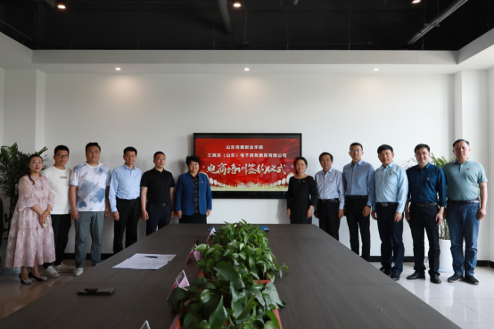 参加签约仪式的还有济南市章丘区双山街道副主任赵国栋,济南市民营经济发展局企业服务特使逯志金,学院党委副书记齐元江,党委委员、宣传统战部部长王冠松,三涧溪(山东)电商集团和学院信息工程系相关工作人员。
