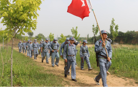 据悉,舜耕九州实践教育基地依托所在地水河村独有的自然条件,打造了全省唯一的“重走长征路”主题红色研学体验项目。该项目全程长达1.5公里,致力于把红色资源转化为教育资源,让红色文化走进课堂、走进心灵,激励广大党员弘扬伟大长征精神,走好新时代的长征路。