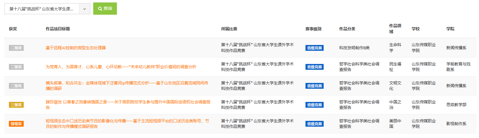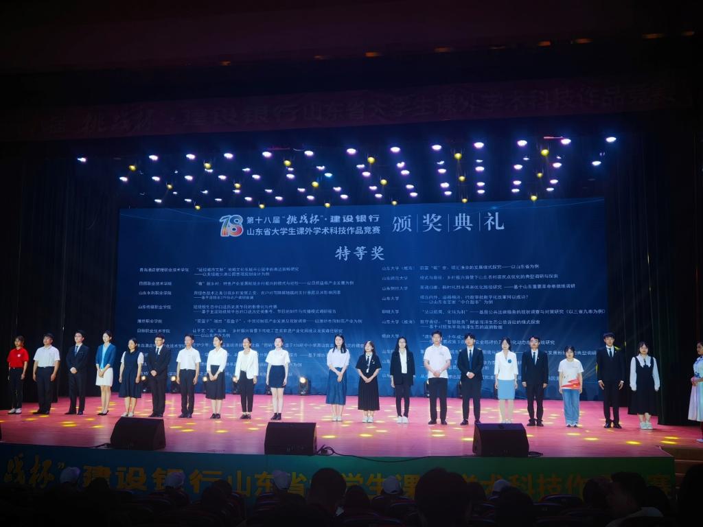 5月18日至22日,第十八届“挑战杯”山东省大学生课外学术科技作品竞赛闭幕活动暨颁奖典礼在齐鲁工业大学(山东省科学院)长清校区艺体中心礼堂举行。我院斩获特等奖1项、二等奖3项、三等奖1项,实现获奖数量新突破!