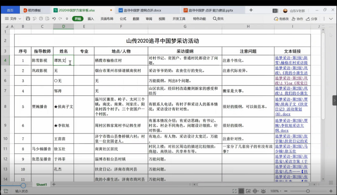 由于受疫情的影响,今年追寻中国梦采访活动没有组织大规模的外出采访,而是由大众网记者、专业教师进行线上指导,记者团学生采用融媒体云采访报道的新模式,用手机或相机拍摄家乡四邻、周边村镇共同奔小康的人物和事迹,按照大主题小切口的方式,以大学生的视角讲述普通群众用勤劳双手创造美好生活的小康故事。这次开展的线上“云培训”就是针对同学们在采访前和采访过程中遇到的难题进行指导和解答,推动采访活动顺利开展。