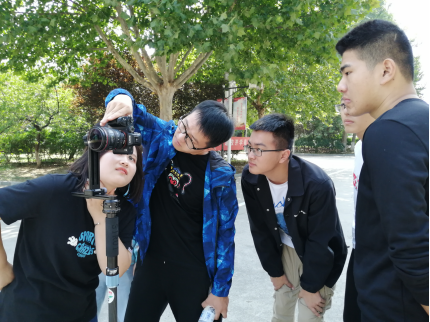 两位师傅带学徒们在校园内进行实际拍摄,将讲授的专业内容进行实践与落实,把抽象的专业知识转化为实际的操作与实践,便于实现学生理论知识课程与企业工作实际顺利对接。