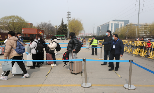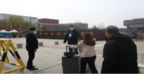 同学们身负大小行李,在校门口有序排队入校,经过健康码检查、体温检测、学生证核验等程序依次通过入校通道进入校园。省外返校的同学还需进行入鲁人员健康绿码查看。安全保卫处全体工作人员在校门口,检查指导各入校通道运行情况,确保每一个环节都完美顺畅,让前来送站的家长安心,让欣然归来的学生放心。