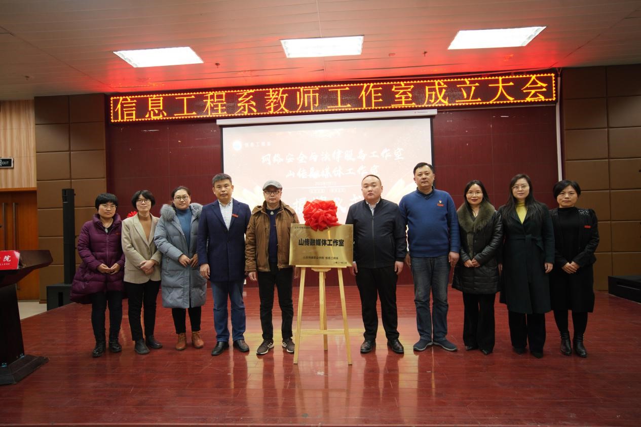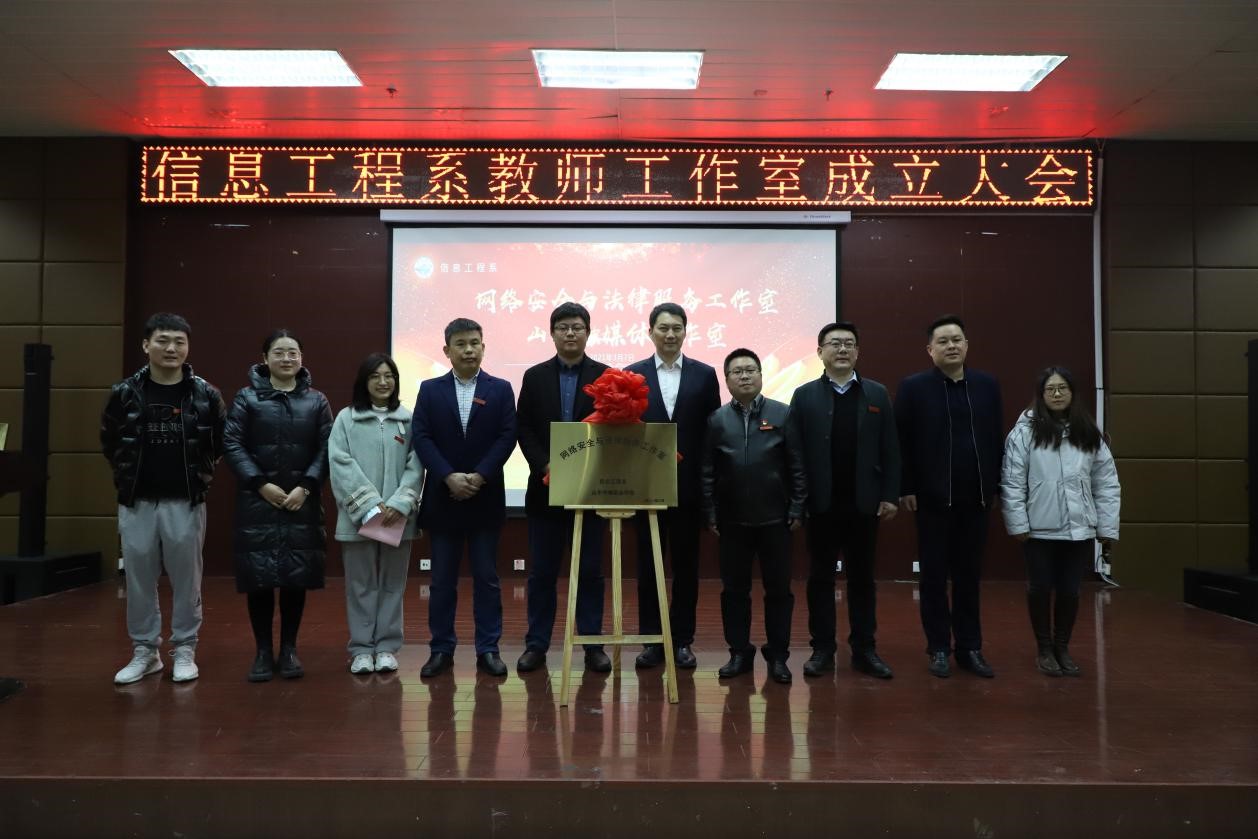 3月7日,我系在报告厅举行“网络安全与法律服务工作室和山传融媒体工作室”成立大会,信息工程系全体教职工、专兼职辅导员和部分学生代表参加;特约企业嘉宾中安华盾咨询有限公司董事长罗颖、中安华盾咨询有限公司培训中心项目总监方丽丽、奇安信科技集团华北行业总监陈昱豪、奇安信科技集团山东行业经理张韵晗、奇安信认证培训中心讲师满建设、山东心屏映画影视文化传播有限公司总经理郝志刚、汶上融媒体中心副主任王恩欢列席。