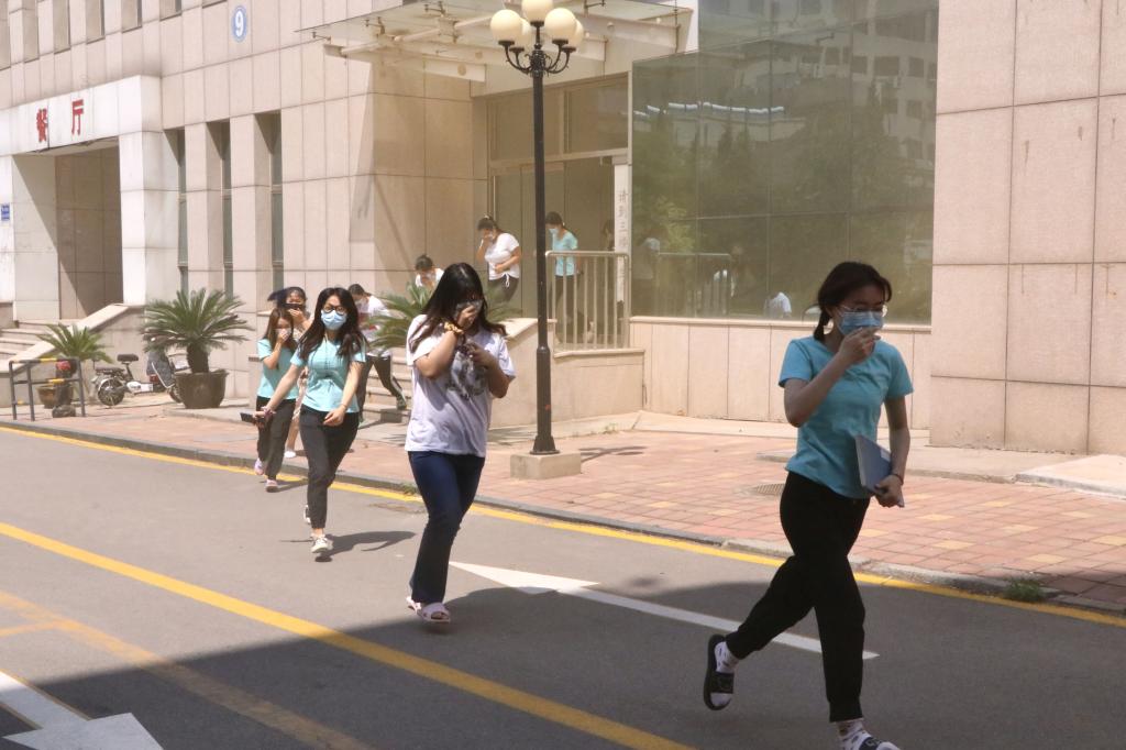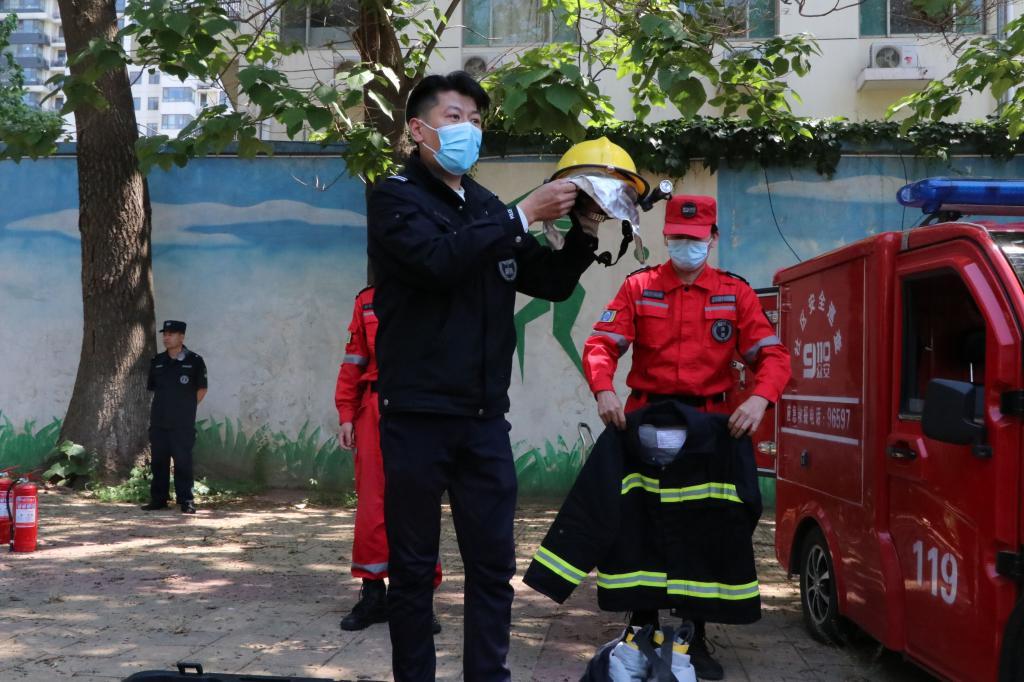 为了让同学们将理论知识应用于实践,懂得突发状况时逃生的方法,孙队长带领学生们进行了逃生演练。在逃生过程中应捂住口鼻,弯腰,顺墙角依次逃生,不使用电梯,遇到障碍时,应当根据具体的情况,使用具体的工具。