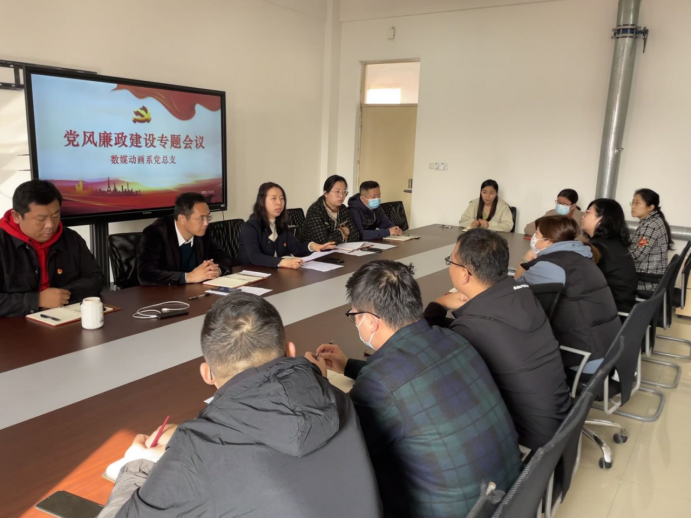 11月4日,数媒动画系党总支于1411会议室召开党风廉政建设专题会议。系主任韩丙论、党总支书记汤莉、相关负责人及全体辅导员参加会议。