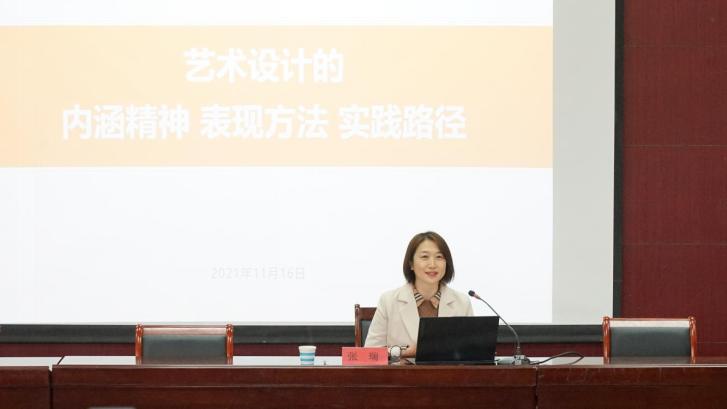 为深入贯彻习近平总书记在文艺座谈会上的重要讲话精神,深化师生对“思政+设计”的认识与理解,提高创新创作过程中理论与实践相契合的能力。我系于11月16日在行政楼报告厅举办“艺术设计的内涵精神 表现方法 实践路径”主题讲座。活动由系主任宋雪主持,特邀山东工艺美术学院视觉传达设计学院教授张瑞主讲,特邀赵进教授、全体教师及2020级,2021级各班学生代表参加。