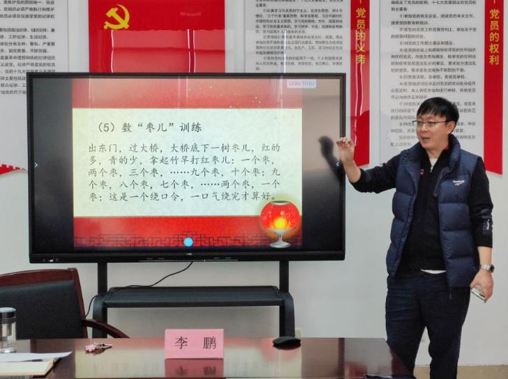 李鹏对现场老师们的发声方法进行了辅导,一是要加强发声训练,讲课时节奏不要太快,要让学生听得懂、学得快;二是要做好角色定位,把学生当成家人和朋友,讲课过程中要和学生发生感情“交流”,吸引学生注意力;三是要多阅读书籍,将理论与实践联系起来,提高气场。四是在讲课时,要根据讲授内容的难易程度和重点、难点的关系,联系学生的接受情况,正确运用轻、重、缓、急的语气,形成最佳节奏。