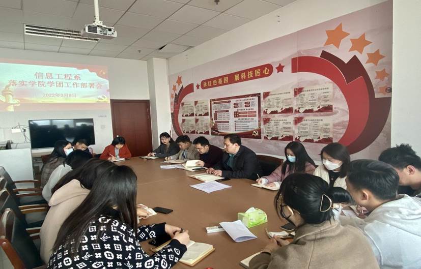 为切实推进我系学团工作,扎实做好疫情防控、学生安全管理,3月8日,信息工程系召开2022年学团工作会议。信息工程系主任董善志,党总支书记张琳,专兼职辅导员参加会议。会议由张琳主持。