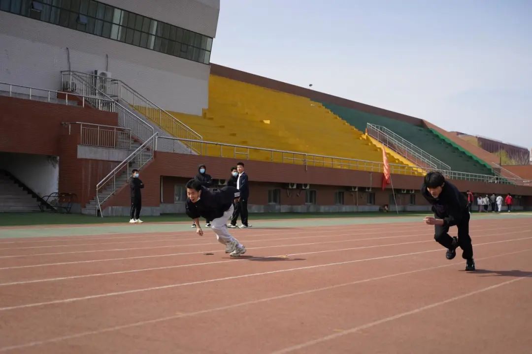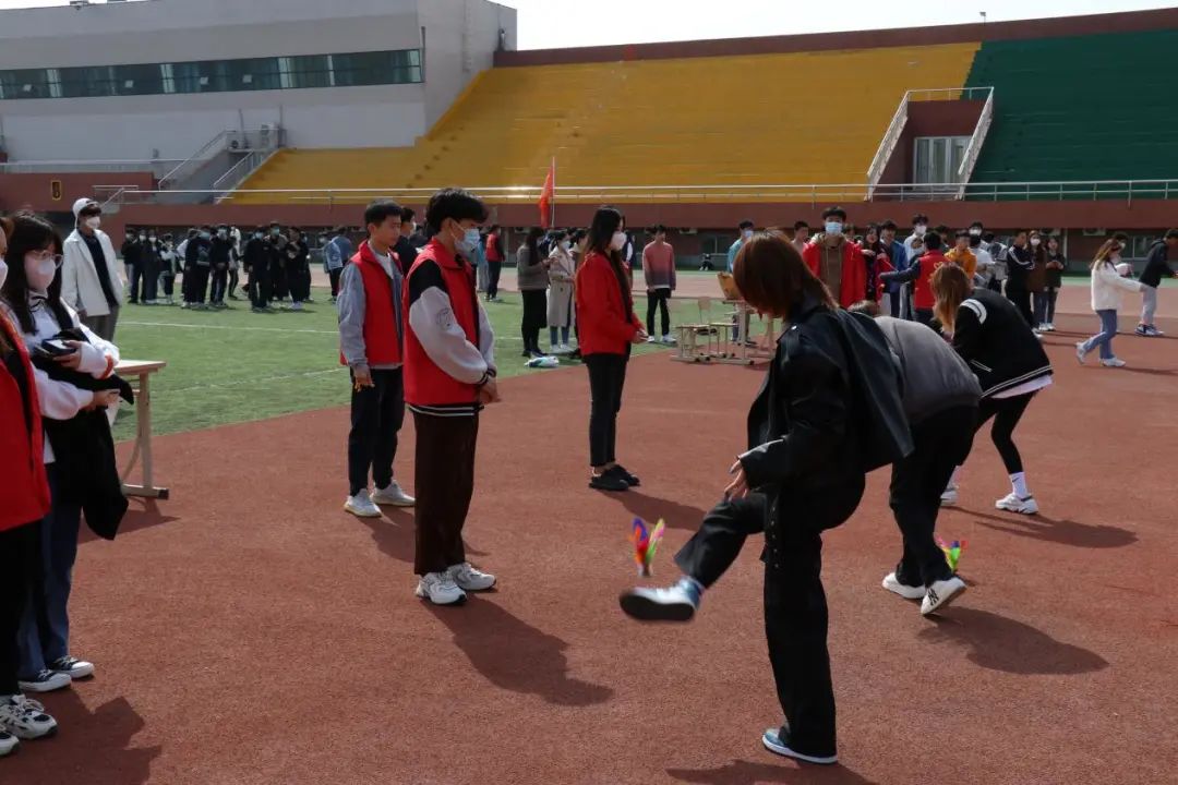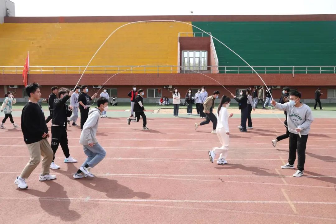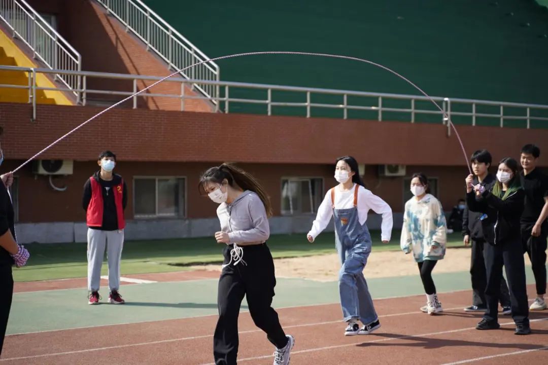 运动会还没有开始,各系同学们已经在操场排队等待,他们心中充满了期待,怀着一颗躁动的心静静等待运动会得开始。赛前,基础教学部范磊叮嘱同学们注意事项,倡导大家安全运动。趣味项目设置跳绳、踢毽子、托球跑、五人绑腿跑、手榴弹投准五个大项。其中,跳绳分为集体花式跳大绳、一分钟单人跳绳;踢毽子设集体、个人2个单项。首先集体花式跳大绳拉开序幕,同学们的呐喊助威声此起彼伏。随着跳大绳的结束,各类趣味团体赛也竟相开展。无论是踢毽子、托球跑,还是五人绑腿跑,都考验着队员们的默契,两旁的加油声不断,赛场气氛十分活跃。