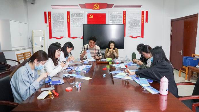 活动参与老师团结协作缝制沙包,将缝制好的沙包送到各班学生手中,为学生参与体育锻炼创造条件,并将“绿色环保,健康生活”的理念融入学习与生活中。党员老师将对学生们的亲切关怀缝进每个小小的沙包之中,希望向同学们传递积极向上的生活理念。