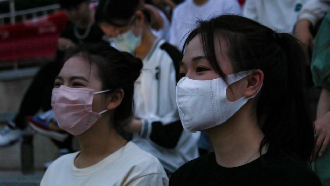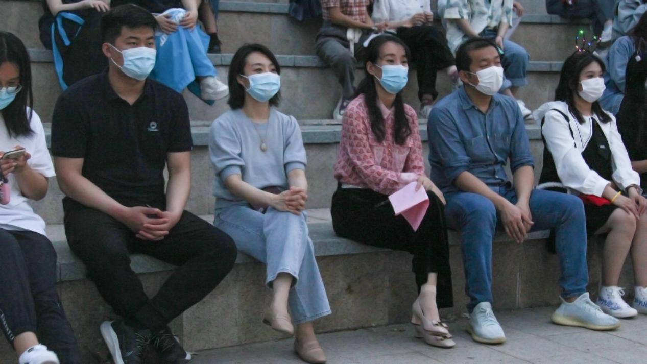 活动开始前,应疫情防控要求,观众们自觉带上口罩,间隔落座。工作人员分发应援棒。
