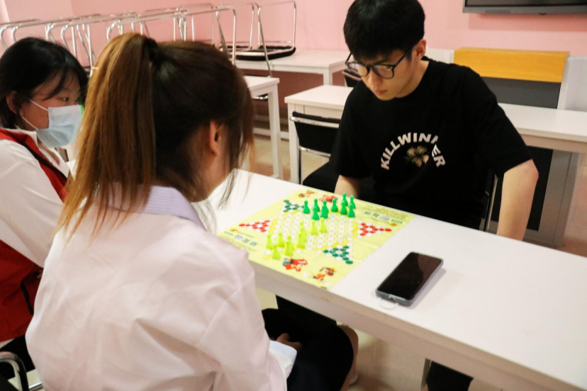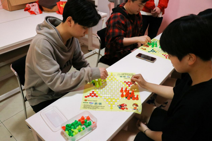 本次比赛分为三项:跳棋、象棋与五子棋。5月4日晚和5月5日中午,通过线上小程序依次决出晋级赛与决赛人员,5月5日下午五点,线下决赛正式开始。比赛中,采取三局两胜的淘汰制度,两两对弈,大家比棋艺、比智慧,选手们坚持“友谊第一,比赛第二”的宗旨,展现出了良好的竞技状态,比赛室里也洋溢着喜庆、热烈的气氛。接下来让我们共同欣赏各个项目的竞赛瞬间。