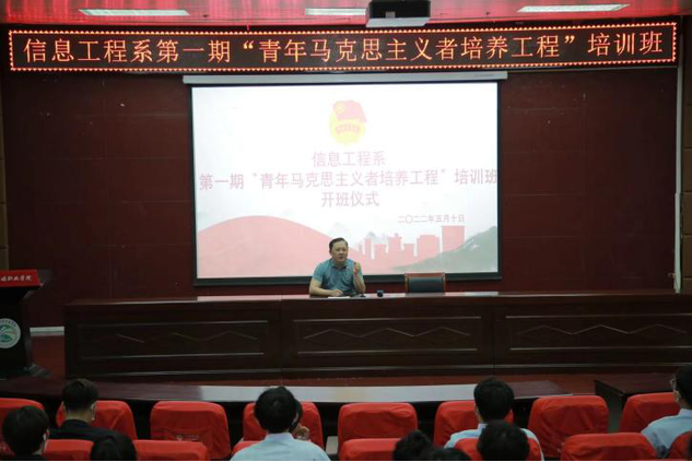 为了增强我院共青团基层组织建设,深入推动团中央倡议的青年马克思主义骨干培训工程,5月10日下午,信息工程系举办青马工程暨第一期学生骨干培训班开班典礼暨青年干部座谈会,学习习近平总书记在庆祝中国共产主义青年团成立100周年大会上的讲话精神。党总支副书记兼团总支书记方正、专兼职辅导员、各班团支书、团员及进步青年参加座谈会。
