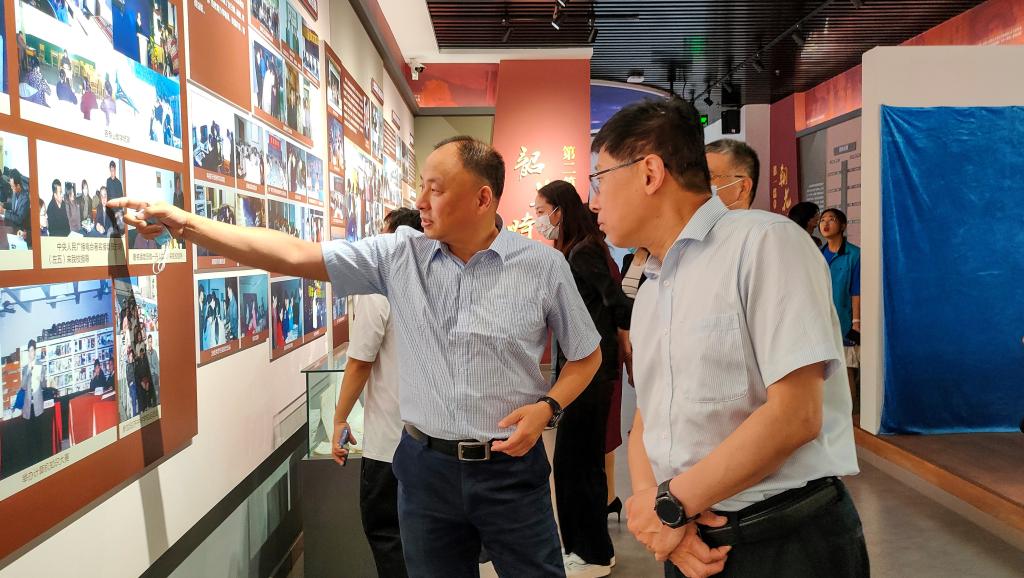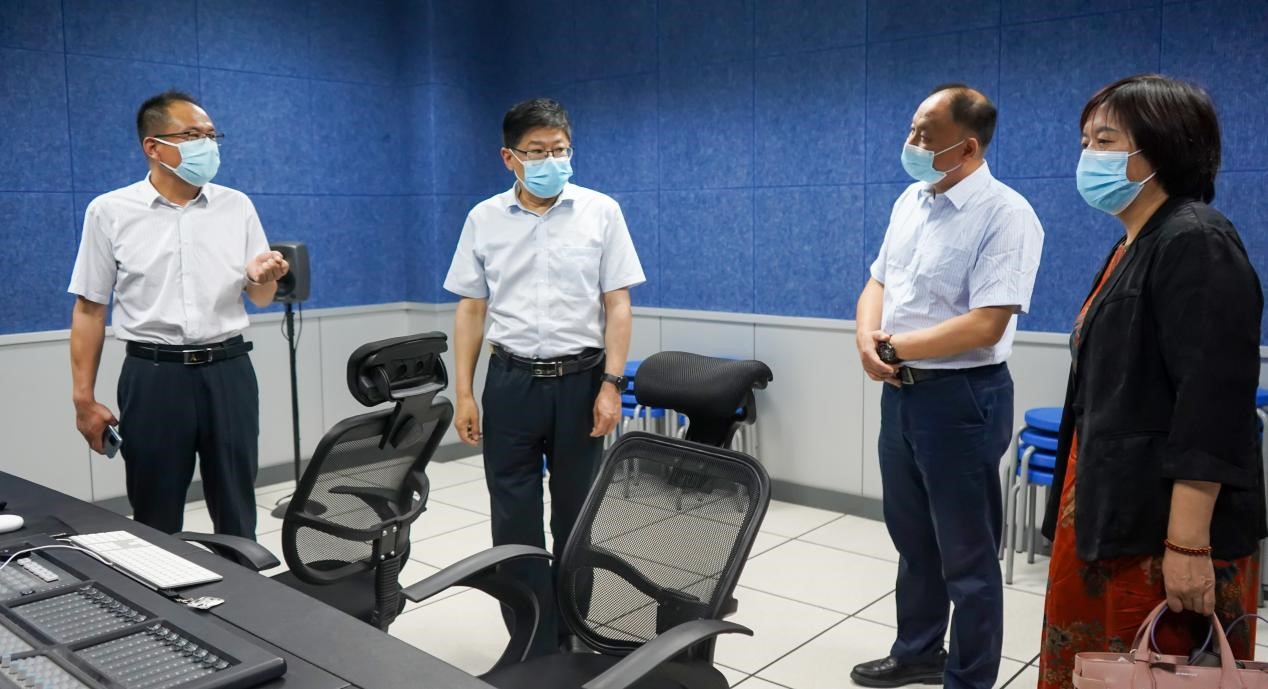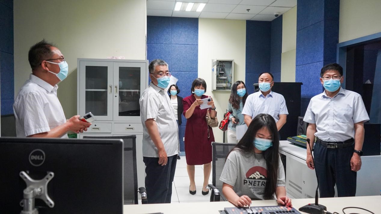 在实训中心,考察组一行参观了600平米演播大厅、虚拟演播室、ENG设备库、摄影棚、录音棚等场地,并走进影视合成实训室查看了学生课堂实践情况,边看边交流新闻传媒专业大类教学设备投入情况。客人还参观了校史馆,了解学院历史进程。