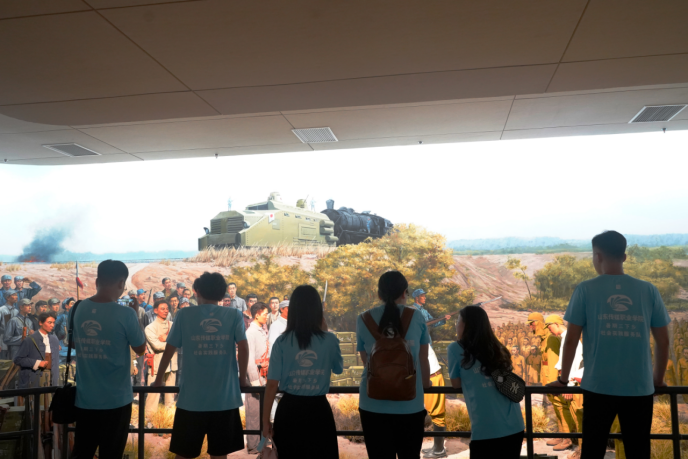 纪念馆中与现代科技相结合,把微山湖的历史情景进行影片式放映,真实地还原了当时的战役场景,缅怀在抗日战争时期由中国共产党领导的铁道游击队、微山湖游击大队、运河支队、黄河支队等抗日武装的英雄。观影结束后,社会实践服务队队员们感悟当年战争的艰苦和先烈们不怕牺牲的精神:我们这一代人是在红色精神的熏陶中长大的,革命先驱抛颅头洒热血,用他们对祖国的虔诚,对革命的热情,谱写了一曲壮丽的红色之歌。没有共产党,就没有新中国,没有共产党,就没有今天繁荣富强的中国,中国共产党的发展是一部气势恢宏的历史书,而长征时期抗日战争等时期形成的爱国主义精神则是这部史书最为波澜壮观的篇章。