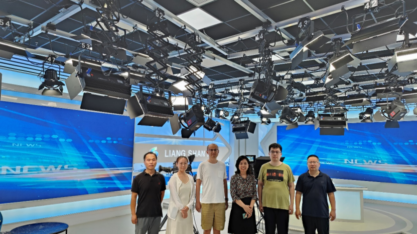 梁山县融媒体中心总工黄希寒、广电网络公司副经理辛同国广电网络公司副经理辛同国带领信息工程系一行人参观了融媒体中心1050平米演播厅、240平米小演播厅及媒体广播区域,并介绍了梁山县融媒体中心的情况。