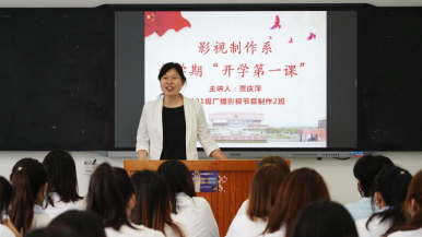 学院院长助理尹纪瑜向同学们介绍了当前职业教育发展的基本情况,希望同学们在国家职业教育发展的大背景之下,通过自己的努力发光发热,成长为高素质的技术技能型传媒人才。