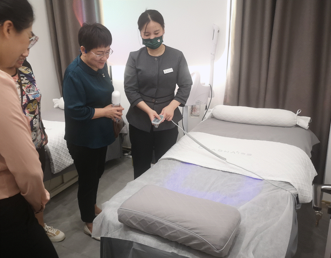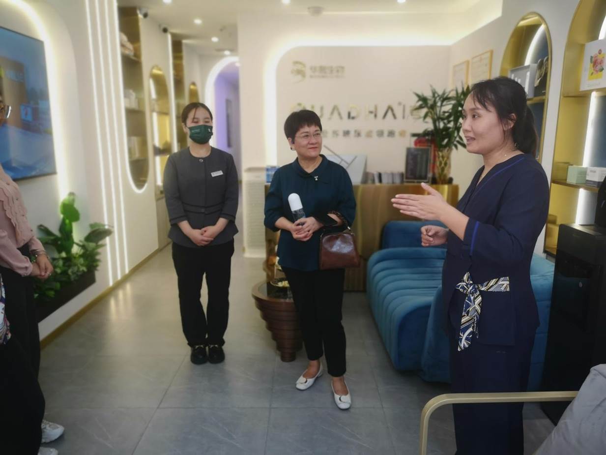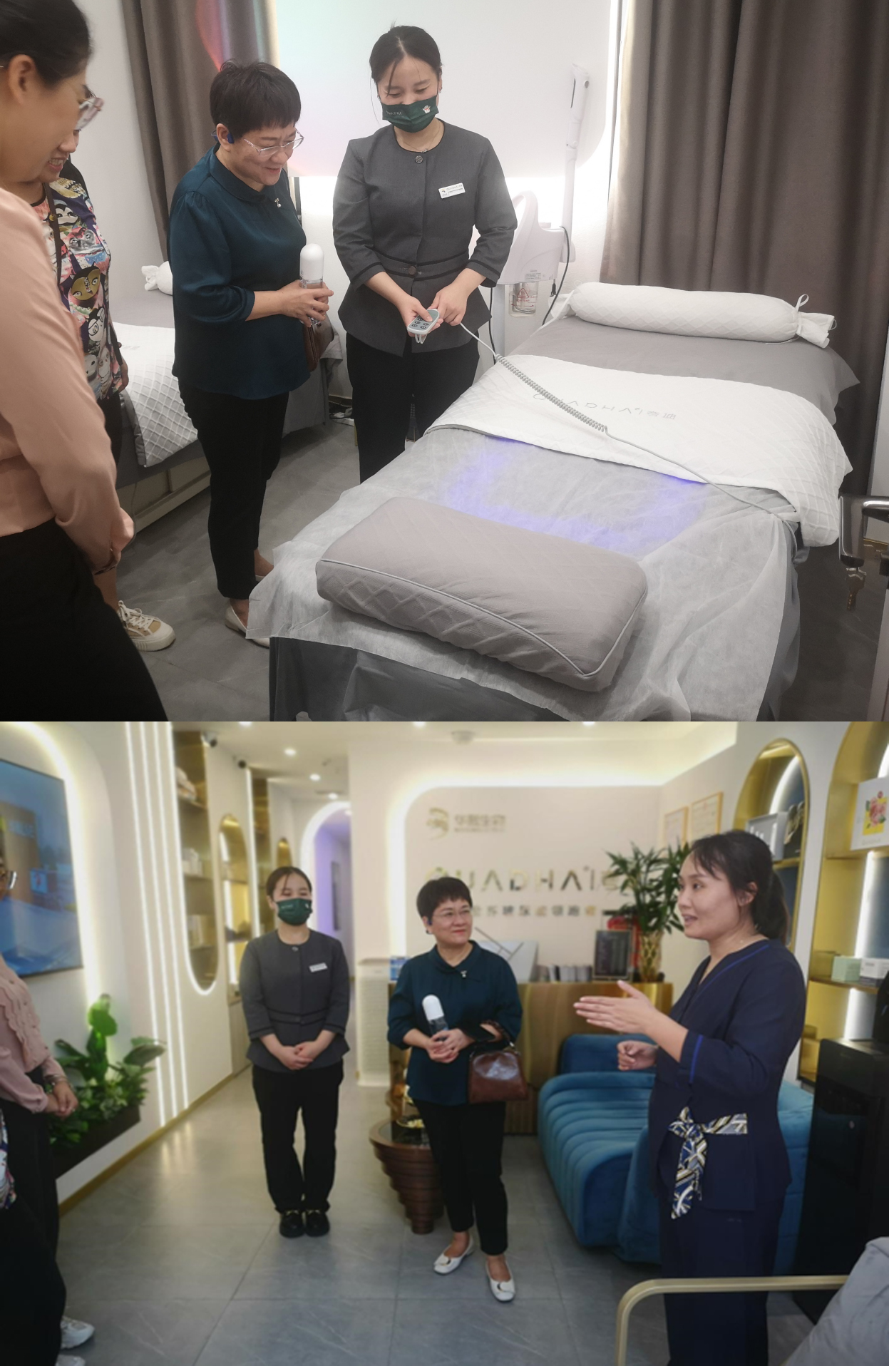 在事业部负责人的带领下,教研团队进入夸迪·科技护肤中心走访参观。在店长和美容师的交流中,调研团队深入了解了现代美业的最新动态和美容院最新的运营模式,以及企业对职校学生技术能力与工作能力的认可,希望更多有理论知识支撑和实践能力并重的高素质专业技术技能人才进入现代美业,促进现代美业积极良性发展,同时强调了员工凝聚力和团队合作精神的重要性是门店发展的重要前提,为专业教学课程内容与实际工作为导向的衔接打下了坚实的基础。