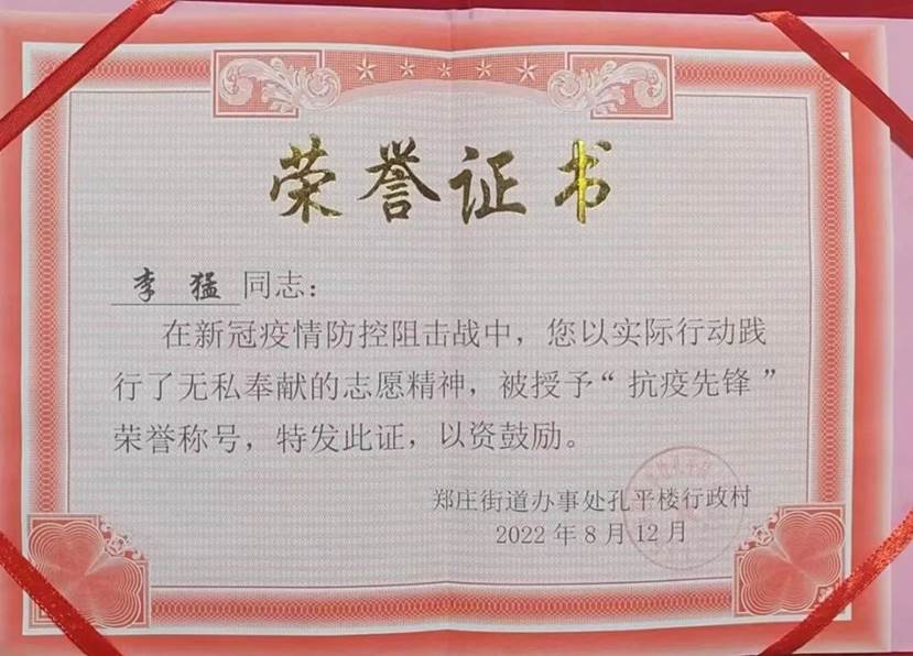 “解封的那一刹那,我感到自己的劳动付出有了成果,虽然我自己的力量很渺小,但是我尽了自己最大的努力。群众的喜悦便是对于我们志愿者最大的支持!”提到解封,李猛遮掩不住欣喜之情。